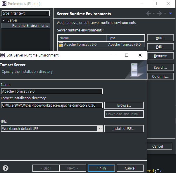 6) 이미 한번 깔려있던 적이 있다면, Configure runtime enviroments 클릭.
