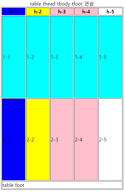 당연히, thead는 테이블의 윗부분, tfoot은 테이블의 발 부분인 아랫 부분을 의미한다.