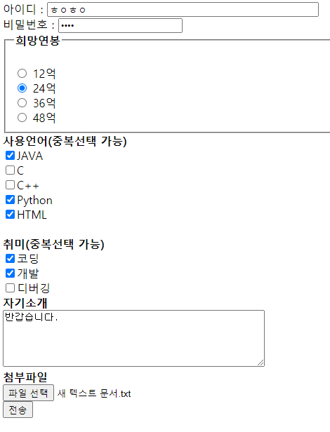 <input type ="checkbox" name = "hobby"> 개발 <br>