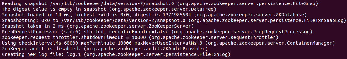 이 컨테이너의 로그를 통해 주키퍼의 역할을 살펴보자.